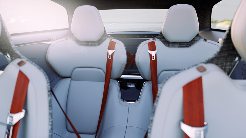 Extrovert and colorful trends within contemporary Swedish lifestyle and design have been powerful sources of inspiration for the design team. Occupants in all four seats are embraced by orange seat belts, and the exclusive, woven wool carpets from the Swedish designer Kasthall have the same deep accent color.