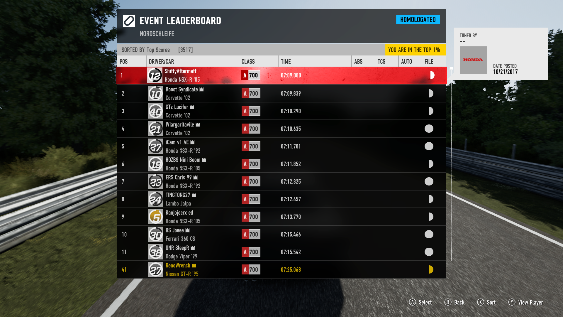 He said it's up on the leaderboard in Forza.