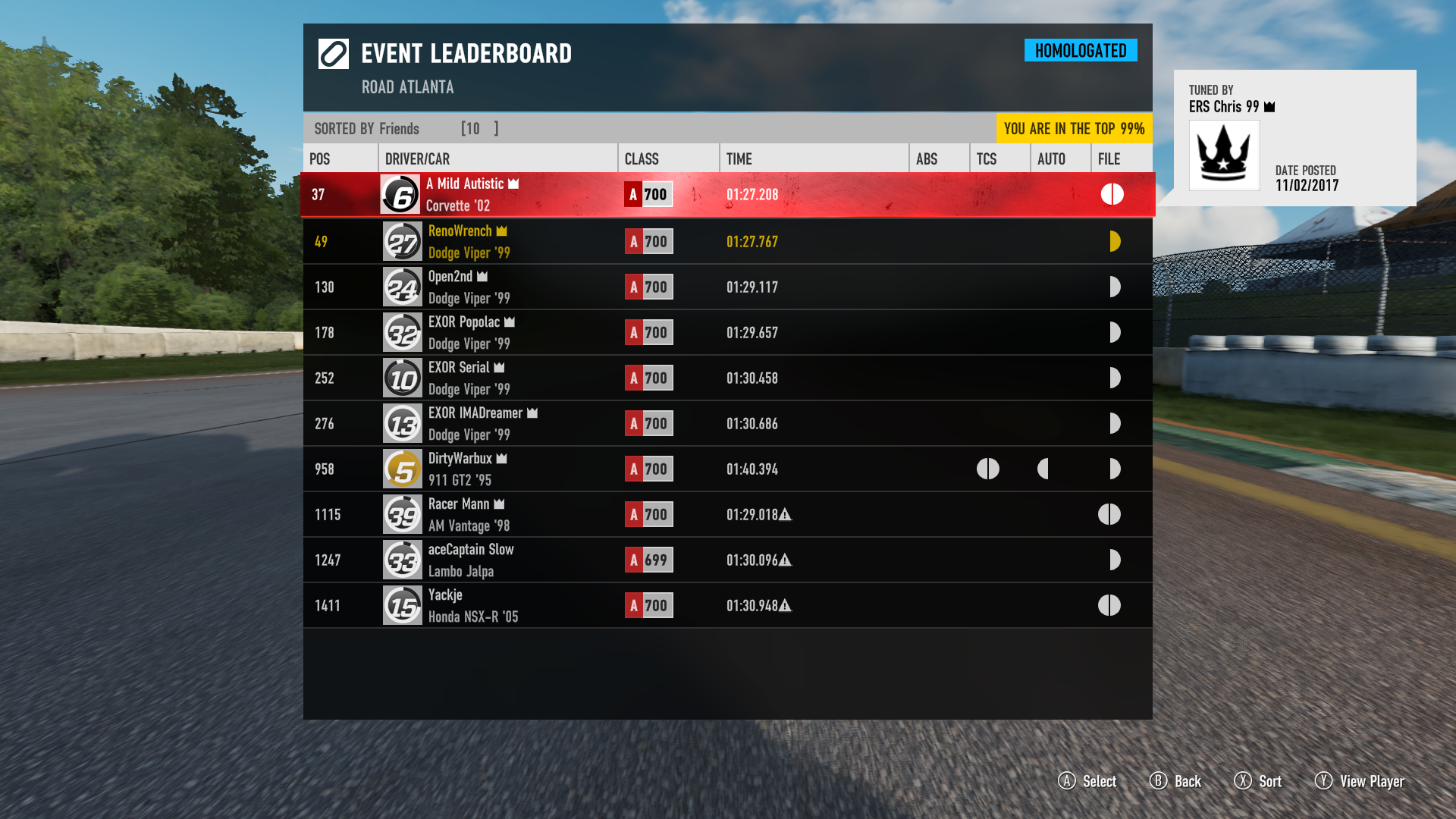 So the fastest '99 Viper on the Homologated leaderboard is in 10th place in the world at a 25.9